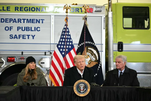当地时间1月24日,美国总统特朗普抵达北卡罗来纳州视察飓风“海伦妮”带来的影响,并接受记者采访。
